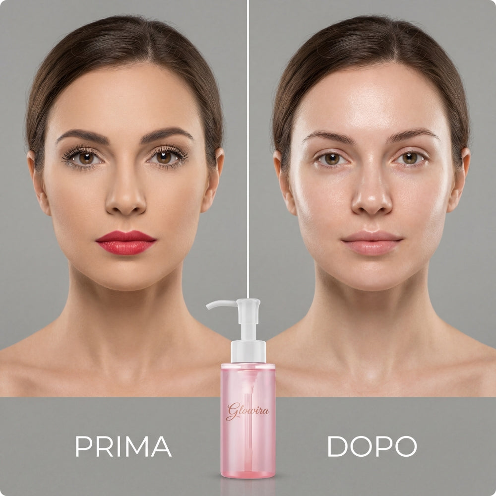 L’Olio Struccante al Collagene Glowira Beauty rimuove efficacemente trucco, impurità e sebo in eccesso, aiutando a purificare i pori senza alterare l’equilibrio naturale della pelle.