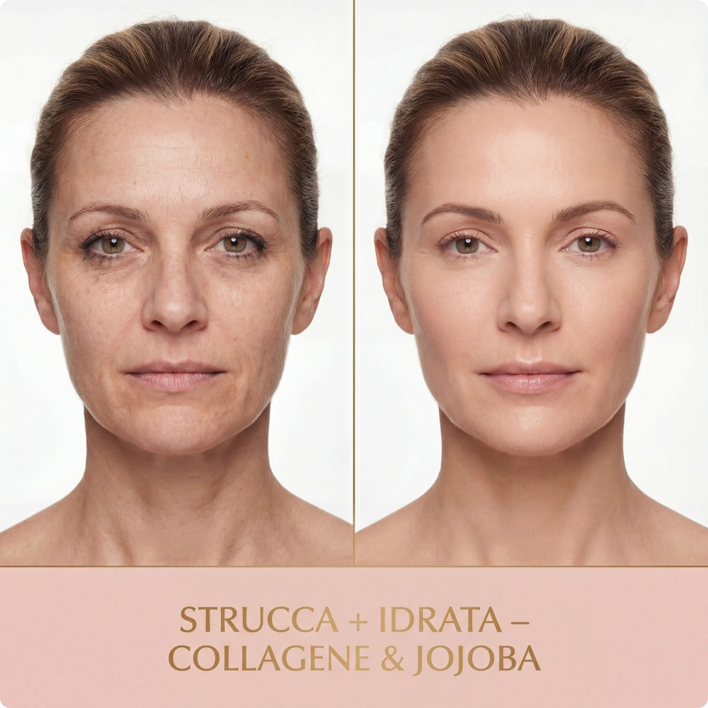 Una detersione non efficace favorisce l’ostruzione dei pori e accentua la sensazione di pelle appesantita, rendendo l’incarnato meno luminoso e uniforme.